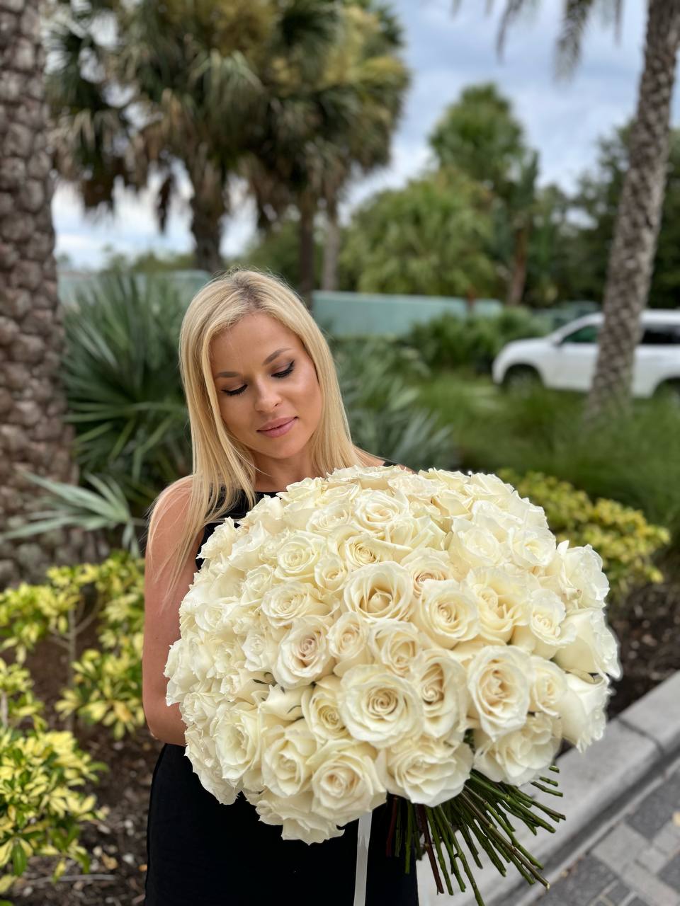 A sculptural dome of cream roses. Elegant, serene, and timeless.