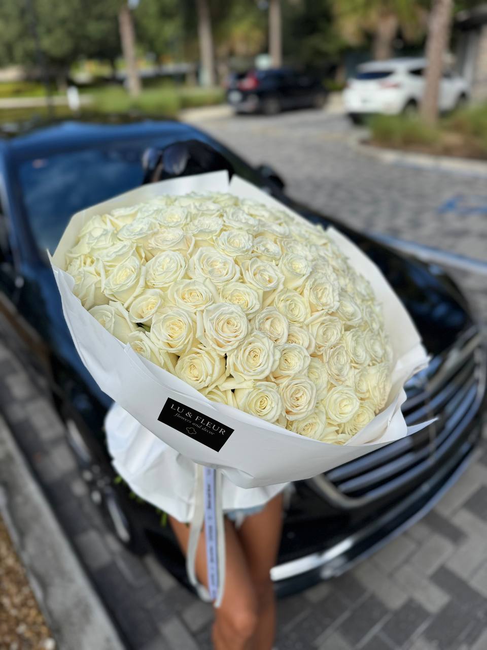 A grand bouquet of pristine white roses. Pure, sculptural, and unforgettable.